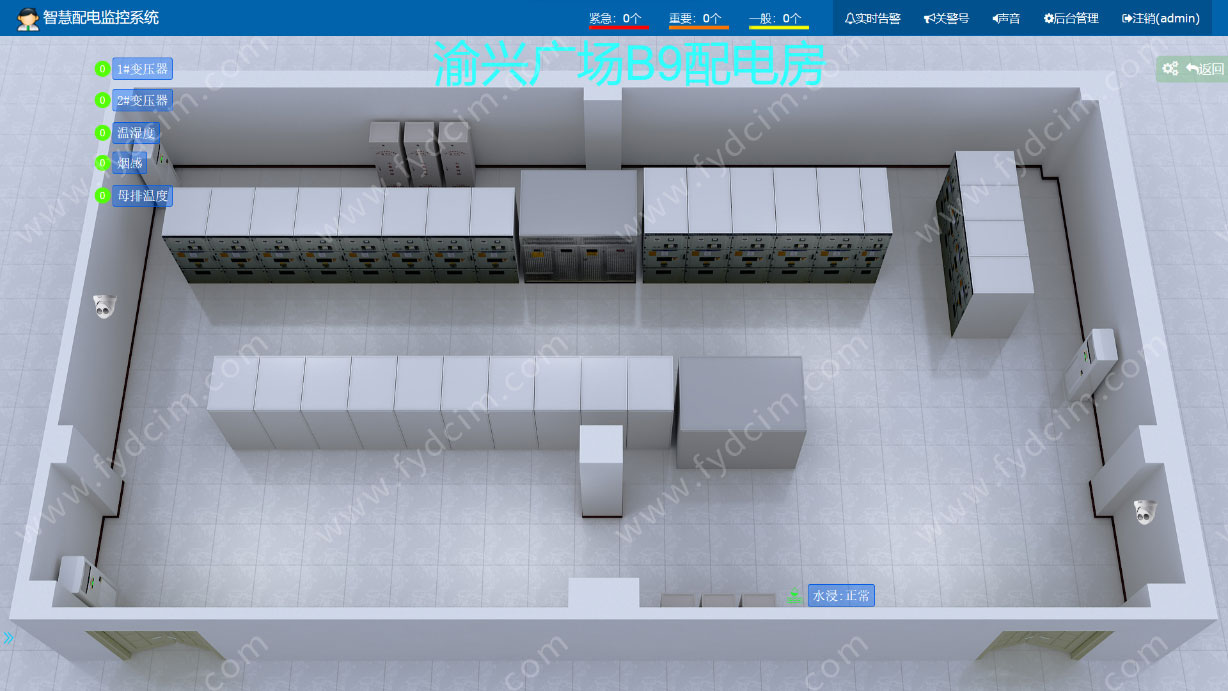 监控内容:变压器母排温度监测、变压器电流,电压监测、温湿度监测、消防监测、电力系统一次线路实时运行状态监测、水浸系统监测和视频监测。